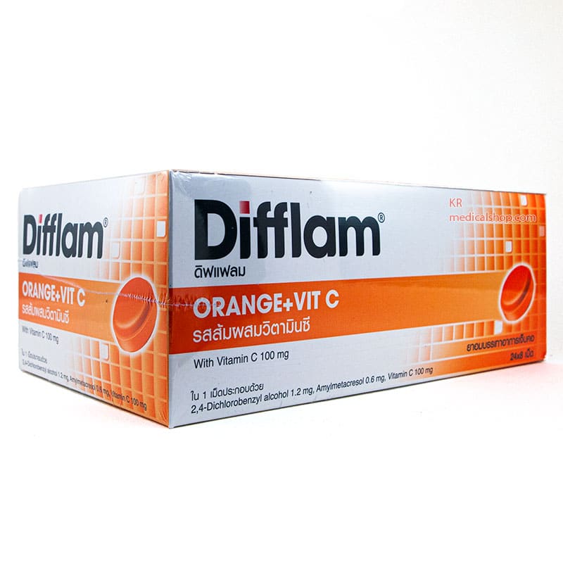 Difflam รสส้มผสมวิตามินซี (24×8 เม็ด)